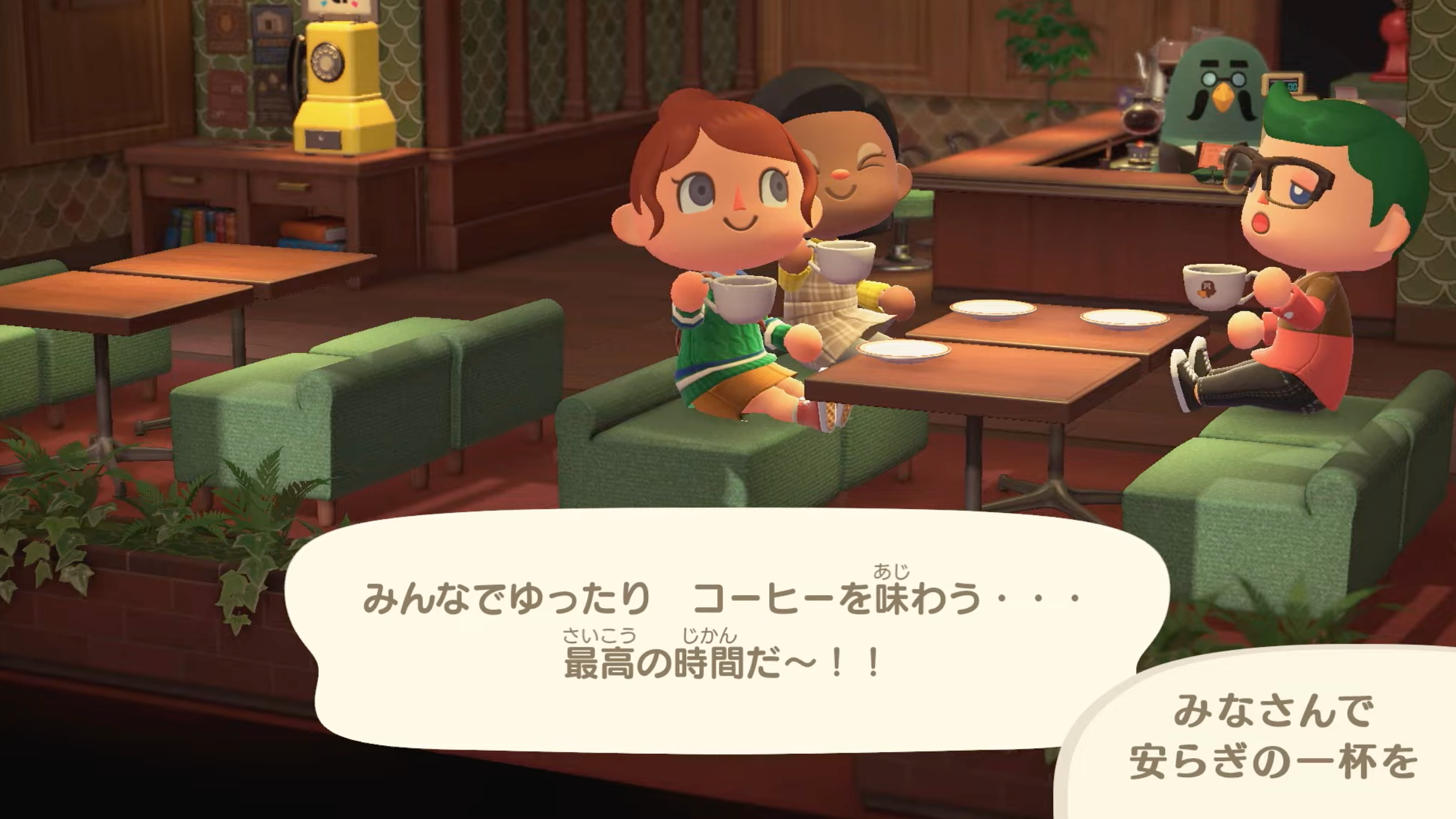 바에 앉아 커피를 마시기도 하고, 마을 주민과 만나기도 하고 주민들과 동석하거나 다른 유저들과 같이 커피를 마실 수 있습니다.